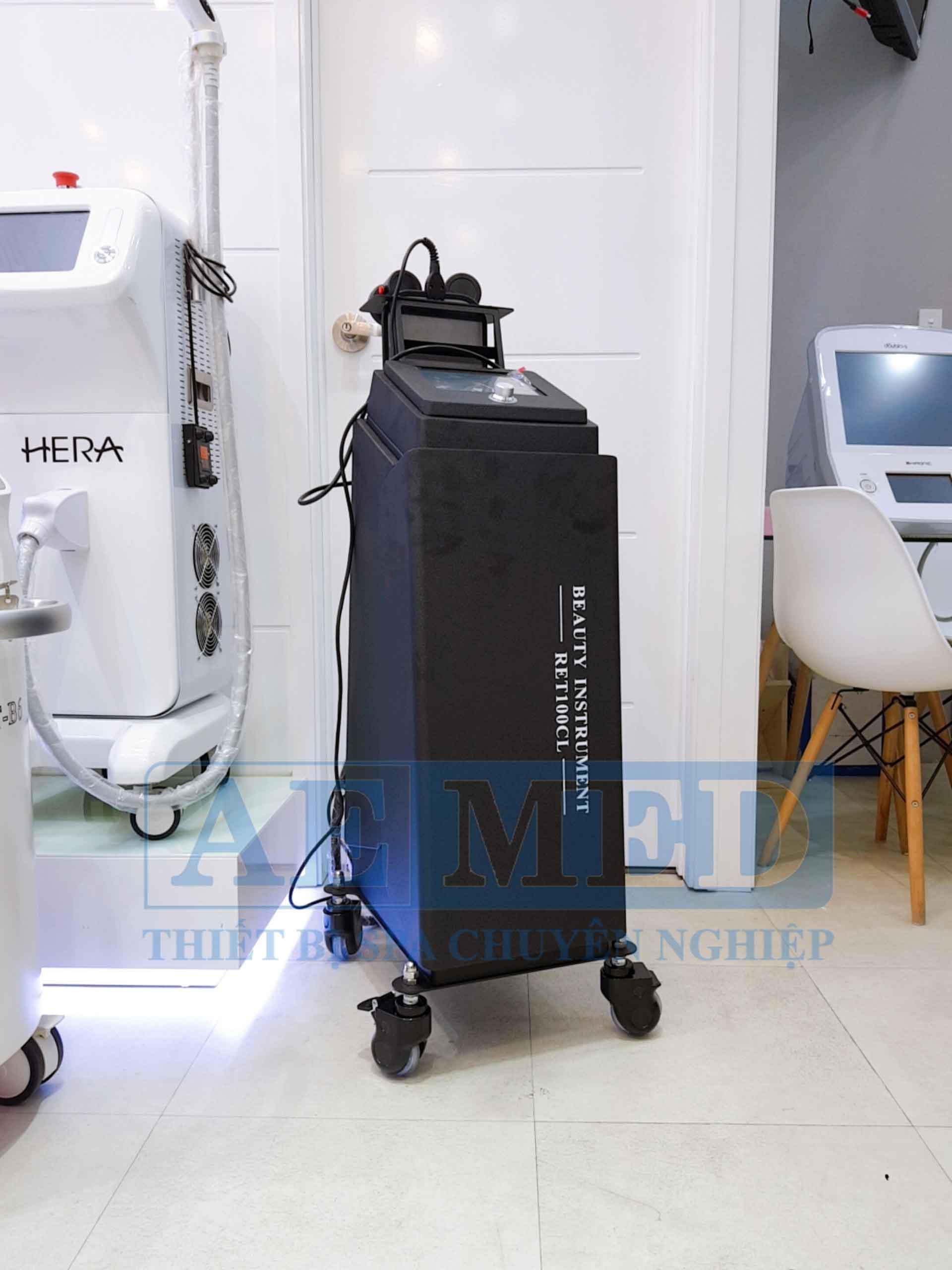 Máy RF RET100CL được tích hợp công nghệ RF hiện đại nhất trên thị trường hiện nay. Tay cầm mặt với chức năng làm lạnh lên đến -5 độ C, giúp cho bề mặt da tiếp xúc luôn mát lạnh, không gây bỏng rát như những loại máy rf thông thường trước đây. Nhưng vẫn đảm bảo tác dụng nhiệt sâu vào bên trong da ở nhiệt độ 60-70 độ C, cho thấy hiệu quả rõ rệt chỉ sau lần đầu sử dụng