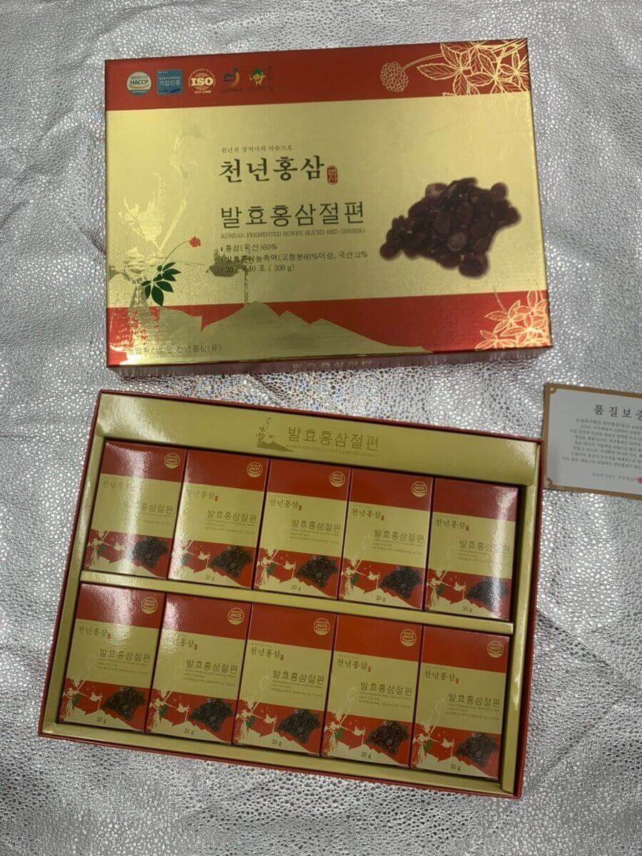 Được sản xuất hoàn toàn 100% từ hồng sâm 6 năm tuổi Hàn Quốc chất lượng cao tuyển chọn.